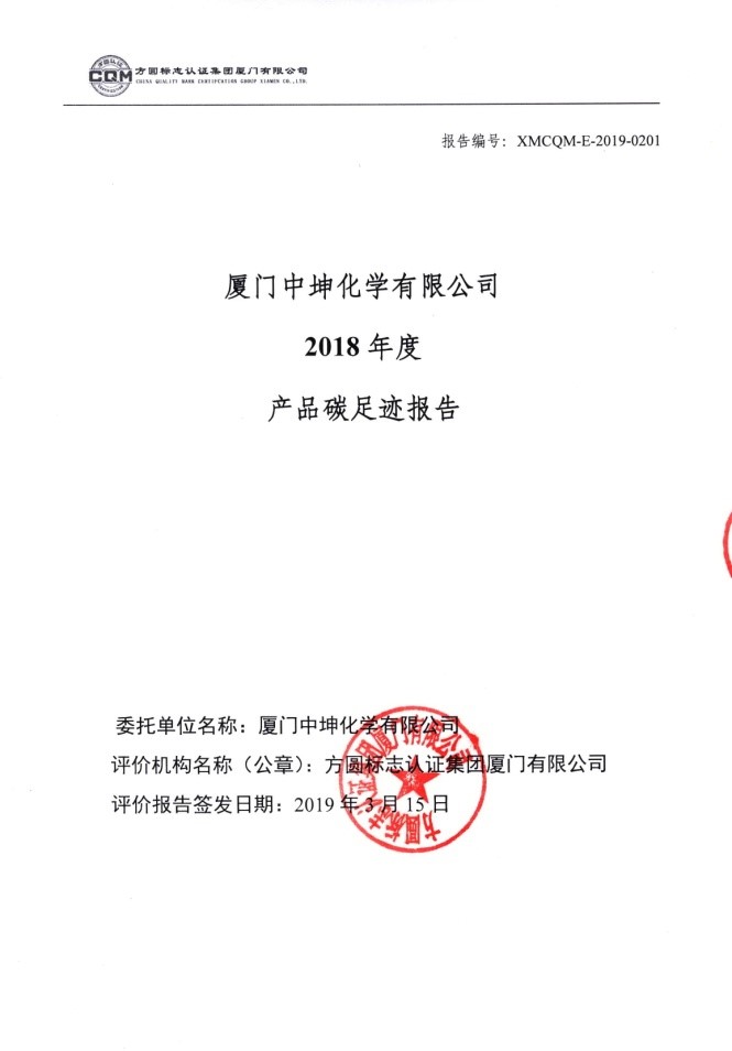 厦门中坤化学有限公司产品碳足迹核算结果公示